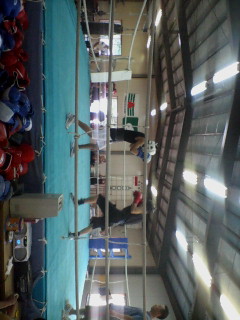 参加2日目(合宿としては3日目最終日)、午前中だけの練習だったが、2Rのスパーリングを2回させてもらえた。一人目はフライ級の元実業団選手権優勝者、力んでいくも軽くいなされていた。二人目はバンタム級の少年代表。テクニックでは当然かなわないが、体格の差をもろともせず、馬力では勝っていた。力まずに打てるようになれば、もっと手数も出てボクシングを組み立てられるのが・・・。