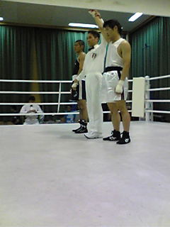 12月6、7の両日に西宮市で行われた兵庫県ゴールデングローブ大会に出場したS選手が、一回戦で3RRSCで勝利!見事に伊賀上野ジムに初勝利をもたらしてくれた。翌日の決勝はポイント負けだったが、少ないスパーリング数の中、よくやったと思う。来年が楽しみになった。
