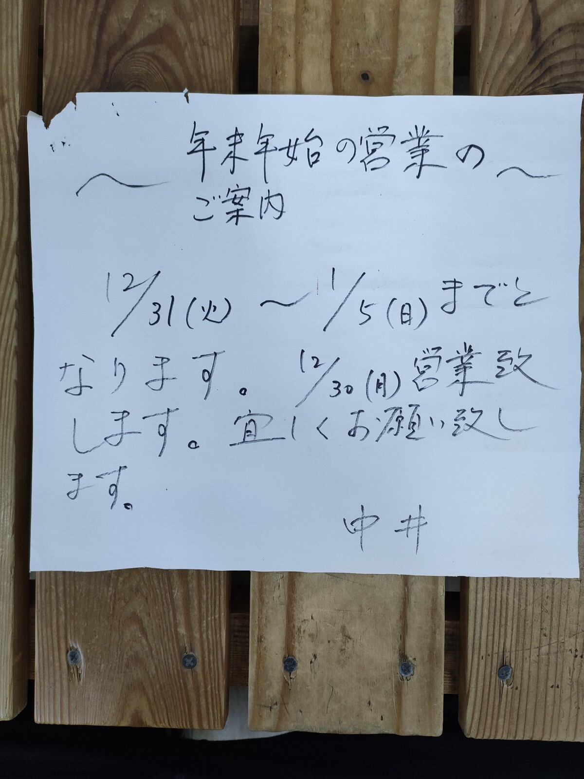 年末年始の営業の御案内